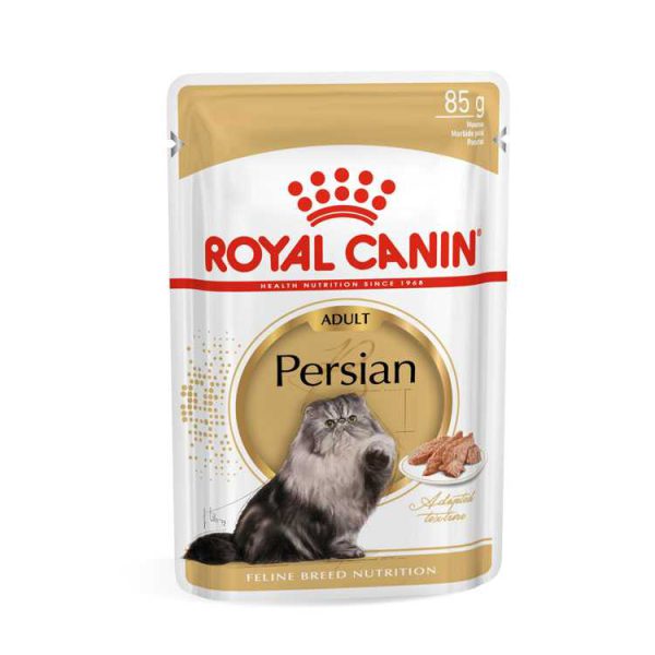 غذای تر گربه مسن Royal Canin حاوی تکه‌های گوشت در سس که برای گربه‌های بالای 12 سال مناسب است. به بهبود عملکرد کلیه‌ها کمک می‌کند و باعث تقویت مفاصل گربه می‌شود.