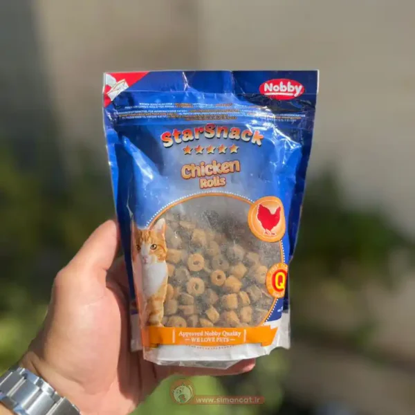 تشویقی گربه رول مرغ برند Nobby با طعم رول مرغ ، انتخابی سالم و خوشمزه برای انواع نژاد گربه می‌‎باشد.