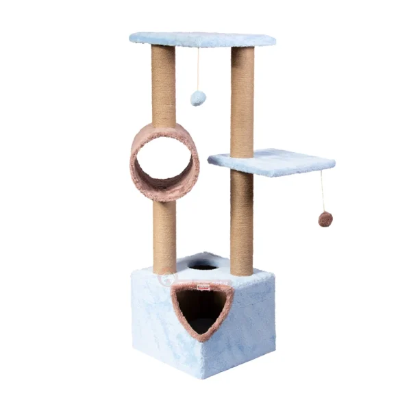 - یک تونل در ساختار میانی این درخت قرار دارد که محلی جذاب برای بازی، کمین کردن و رفتوآمد گربه است. این بخش حس کنجکاوی گربه را تحریک کرده و او را به فعالیت و جستجو تشویق میکند.