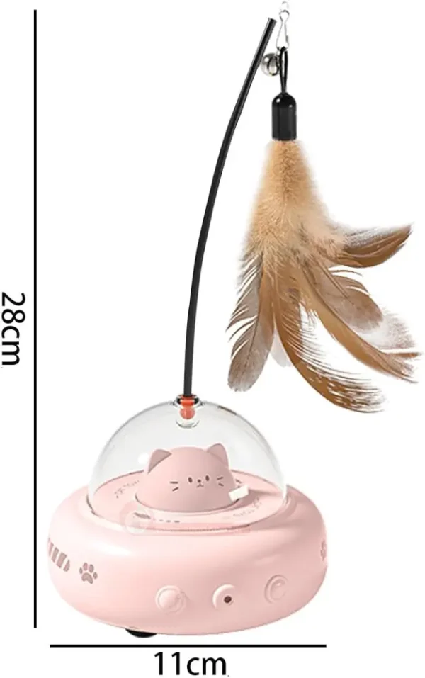 اسباب بازی گربه سفینه لیزر دار متحرک تجربهای بینظیر از سرگرمی و تحرک را برای گربه شما به ارمغان میآورد. این اسباب بازی گربه تعاملی از جنس ABS مقاوم ساخته شده. و دارای طراحی منحصربهفردی است که ترکیبی از حرکت خودکار، نور لیزر 360 درجه و پرهای نرم تصادفی را به پت شما ارائه میدهد. نور لیزر متحرک باعث تحریک غریزه شکار گربه میشود. و او را به تعقیب و بازی ترغیب میکند، درحالیکه پرهای نرم و متحرک، حس کنجکاوی گربه را برمیانگیزد و او را برای ساعتها مشغول نگه میدارد. این اسباب بازی به یک باتری قابلشارژ با رابط USB مجهز است که تنها در 3-2 ساعت شارژ شده و تا 12-8 ساعت بازی مداوم را تضمین میکند.