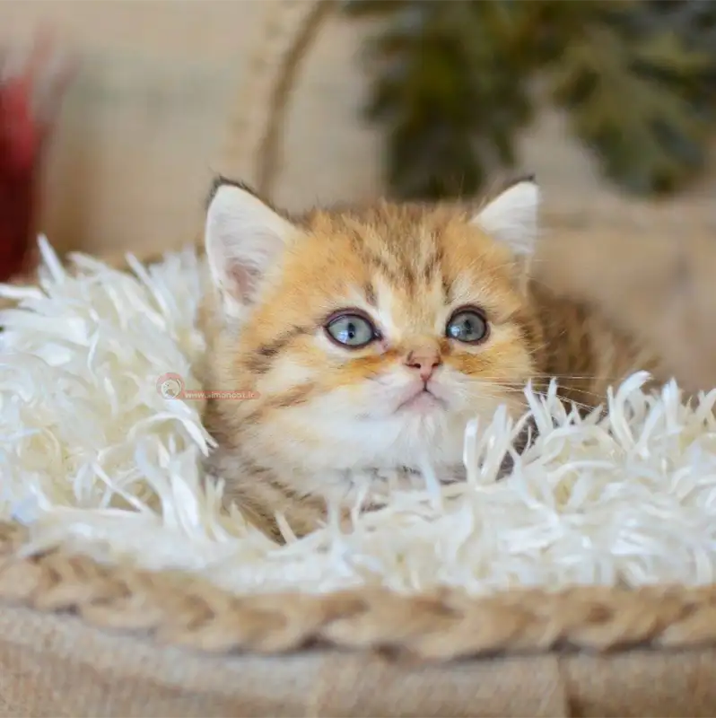 بچه گربه بریتیش بلک گلد ما ۵۲ روزه و یه دختر کوچولوی نمکیه که ظاهر بسیار دلبر و جذابی داره. جنسیت گربه بریتیش لانگ هیر ماده است و موهای خوشرنگ با ترکیبی از خطهای مشکی و طلایی داره. دقیقاً مثل یه بیسکوییت شیری کاکائویی، خوشمزه و ملوسه. چشمای خیلی درشت و سبز روشنی داره که در کنار گوشهای بلند و ایستادهش خیلی به صورت گردش میاد. پنجههای تپلی و گوگولی داره که دل آدم رو میبره.