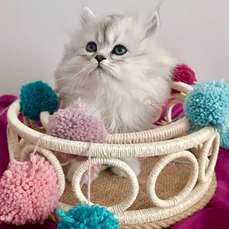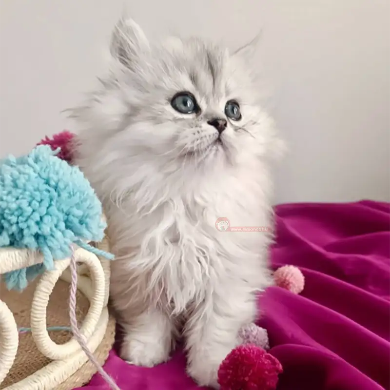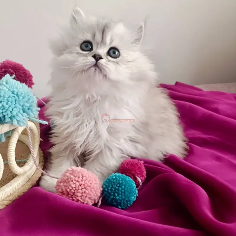 گربه بریتیش ۵۷ روزه رنگ سیلور با چشمهای نقرهای و موهای ابریشمی سفید-طوسی، یه کوچولوی بغلی و مهربونه که با وجود بازیگوشی زیاد، اصلاً اهل خرابکاری نیست و بهترین رفیق برای بازی با بچههاست.