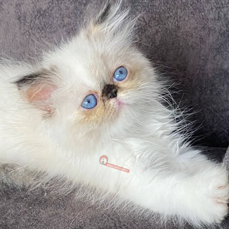 نژاد گربه هیمالین، ترکیبی از نجابت پرشین و جذابیت سیامی است. هیمالینها حاصل تلاقی هوشمندانهی این دو نژاد زیبا هستند که در نهایت موجودی دلفریب و خاص را خلق کردهاند. این بچهگربه نر هیمالین ۵۶ روزه با رنگ منحصر به فرد سفید و قهوهای، که چشمان آبی دارد، و با بدنی گرد و تپل، پاهایی کوتاه و موهای بلند، ظاهری به شدت گوگولی و بامزه دارد، از نظر ظاهری بسیار خاص است. الگوی رنگی او کالر پوینت است؛ یعنی بدنش غالباً سفید است و نقاطی مانند گوشها، پاها، دم و بخشی از صورتش دارای لکههای تیرهتر و جذاب هستند. از نظر پزشکی بهتر است برای تکمیل سلامت و شیر مادرانه نزد مادرش بماند.