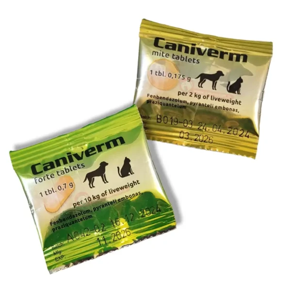 قرص ضد انگل سگ و گربه Caniverm یکی از داروهای پرکاربرد و مؤثر برای پیشگیری و درمان انگلهای داخلی در حیوانات خانگیست. که با فرمولاسیونی قدرتمند، به طور خاص برای مقابله با انواع کرمهای گرد و نواری طراحی شده است. این دارو با ترکیبات فعالی مانند فنبندازول، پیرانتل امبونات و پرازیکوانتل، طیف وسیعی از انگلهای گوارشی را هدف قرار داده. و مانع از رشد، تکثیر و آسیب رسانی آنها به بدن حیوان میشود. از آنجایی که توله سگها و بچه گربهها به ویژه در هفتههای اول زندگی در معرض خطر بالای ابتلا به انگلهای داخلی هستند. مکمل گربه و سگ Caniverm میتواند با مصرف منظم و مطابق با وزن بدن، نقش مهمی در حفظ سلامت آنها داشته باشد. این قرصها در دو مدل عرضه میشوند. یک مدل برای حیوانات سبک با دوز مناسب برای هر ۲ کیلوگرم و مدل دیگر برای حیوانات با وزن سنگینتر با دوز مناسب برای هر ۱۰ کیلوگرم وزن بدن.