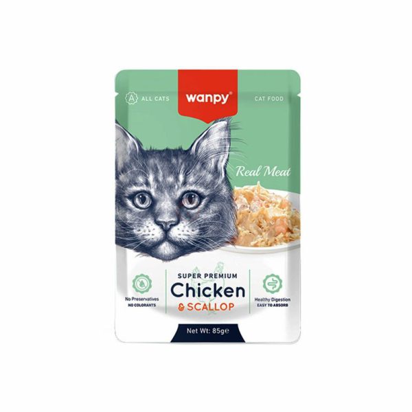 پوچ گربه مرغ و گوش ماهی ونپی با وزن 85 گرم، محصول چین بوده. و با فرمولاسیون به خصوص خود، یکی از پرطرفدارترین محصولات برند Wanpy محسوب میشود.