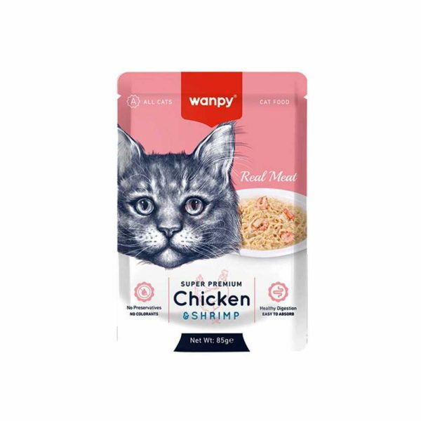 پوچ گربه ونپی طعم مرغ و میگو 85 گرم، ساخت چین، یکی از برترین پوچهای گربه بوده که حاوی مواد مغذی زیادی است. این محصول علاوه بر طعم خوشمزهای که دارد، آب بدن گربه را با 90 درصد رطوبتی که دارد، تامین میکند.
