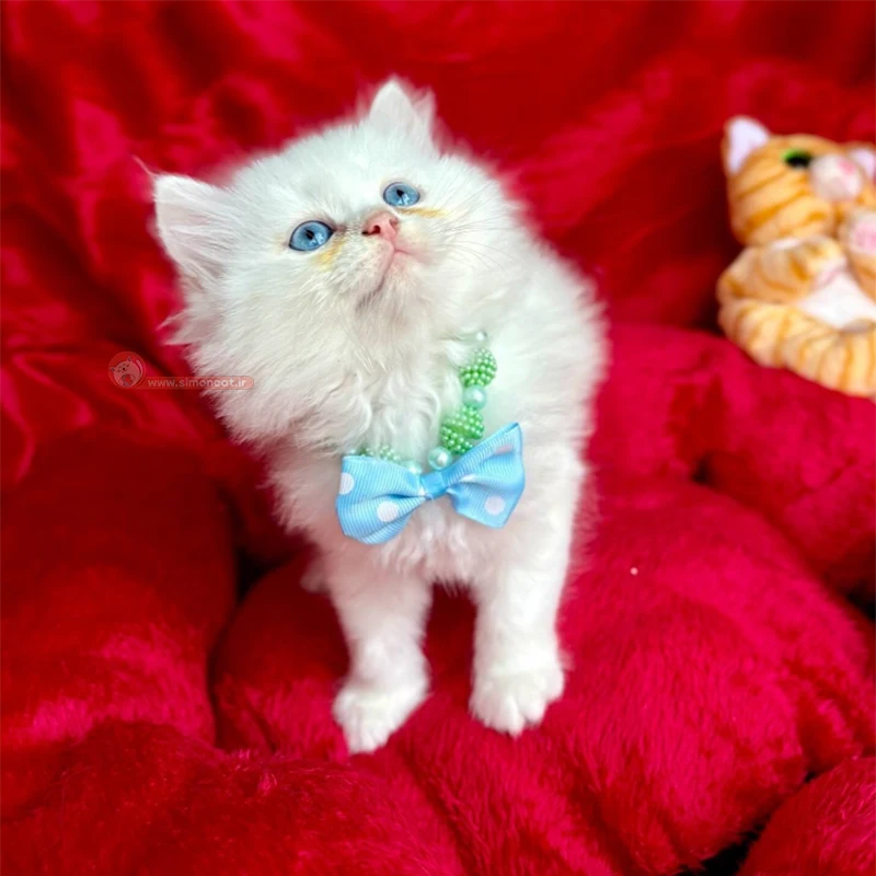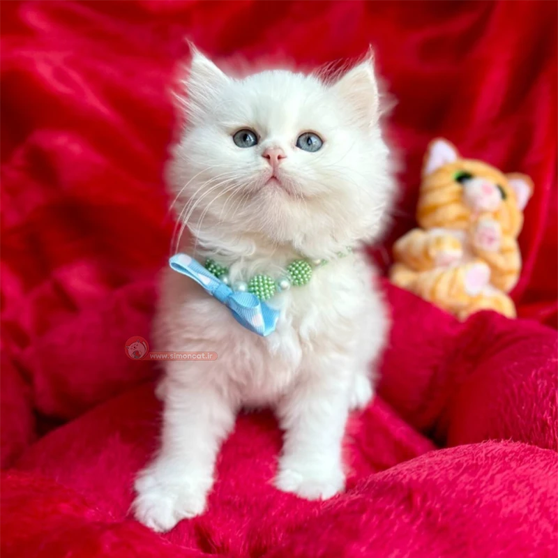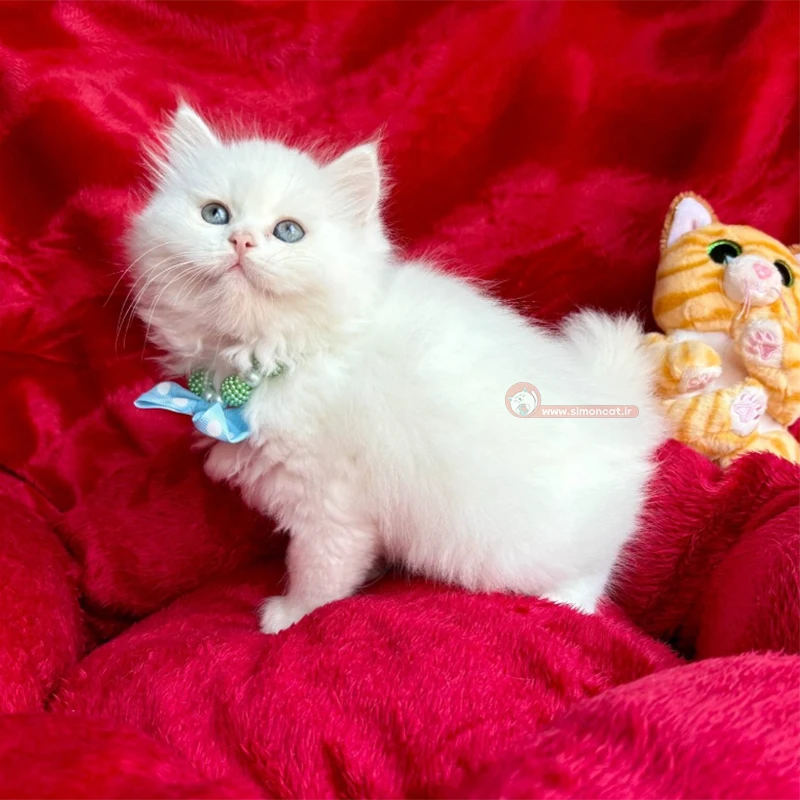 بچه گربه بریتیش سفید پشمالو، 54 روزشه و جنسیتش دختره. ترکیب موهای سفید و ابریشمی در کنار چشمای آبیش درخشش خاصی داره. ارتباطش با بچهها و سایر پتها خیلی خوبه.