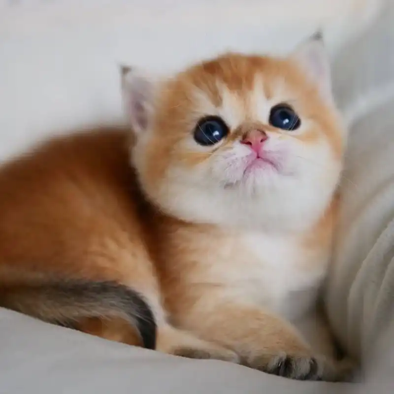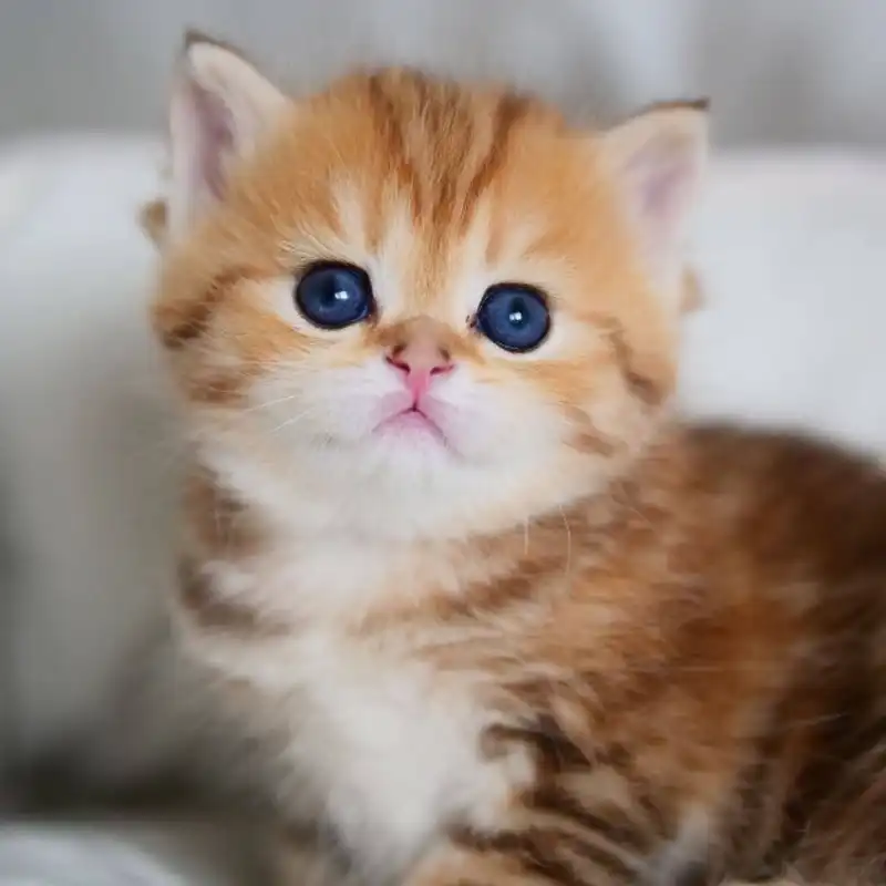 گربه بریتیش چشم خاکستری یه گربه ملوس و دوستداشتنیه که 55 روزشه. گوشهای تیزی داره و یه M کمرنگ نارنجی روی پیشونیشه. داخل گوشاش به رنگ صورتیه و موهای سفیدی داره.