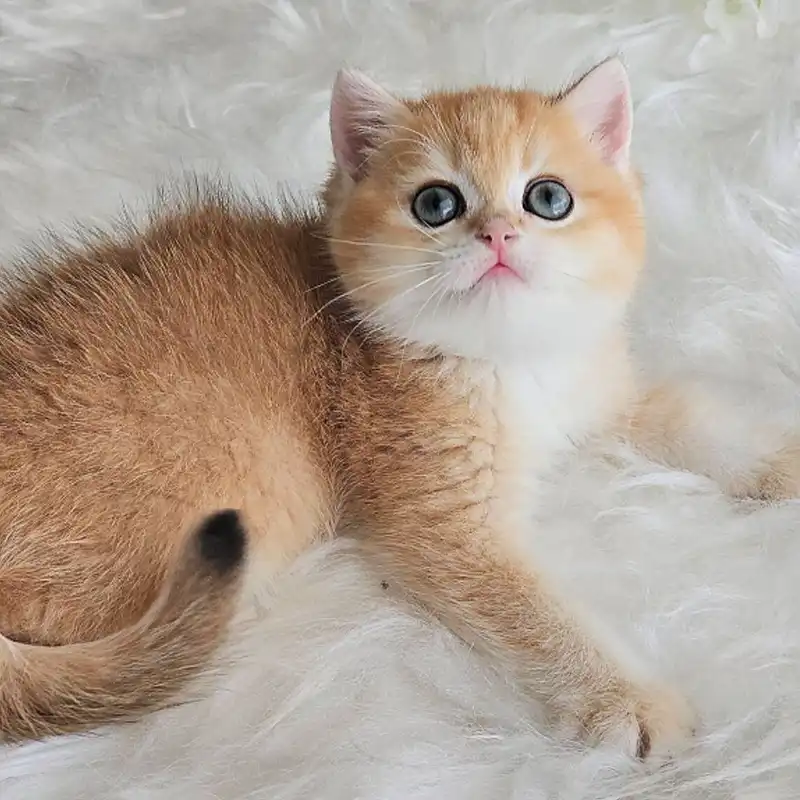 بچه گربه بریتیش چشم خاکستری کد 45 یکی از اون پیشی ملوسای دوستداشتنی هستش که 55 روزشه و نره. این گربه با اون چشمهای خاکستری که یه خط مشکی به دور اون کشیده شده دل آدم رو میبره. پوزه برجستهای داره و بینی و دهان کوچیک صورتیش به بانمک بودنش اضافه کرده است. موهای دور چشمهاش، پوزه، زیره گردن و شکم سفیده و ترکیب خوبی با رنگ طلایی که در نقاطی از سر، دست، پا و بدن آن دیده میشه، بوجود آورده.