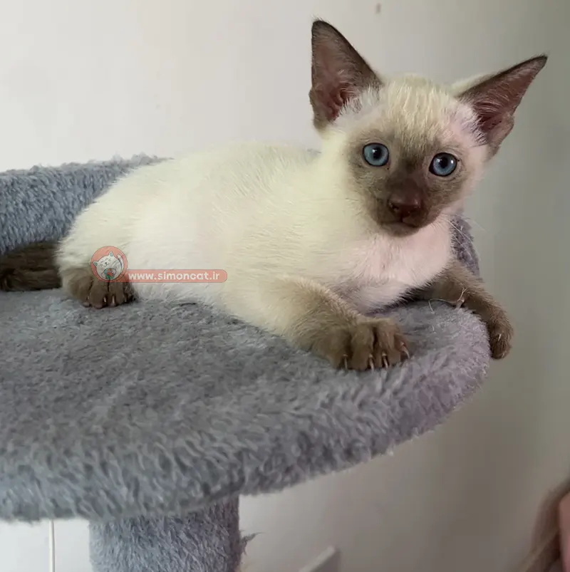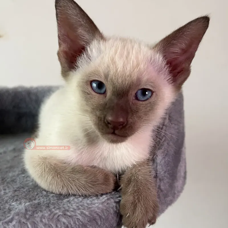 گربه سیامی چشم آبی کد 32، 52 روزشه و جنسیتش نر هست. پیشی سیامی بدنی کشیده و عضلانی داره درست مثل یه ورزشکار که ظاهر بدنی فوق العادهای داره. سر مثلثی شکل داره که با گوشهای بزرگ و بلندش خیلی جذابش میکنه. چشمهای بادومی شکل و آبی رنگ زیبایی داره. موهاش کوتاه و رنگ روشن سفید مانندی داره. اما جالب اینجاست که توی بخشهایی از بدنش مثل صورت، گوشها و دست و پاهاش به رنگ تیره و قهوهای درومده انگار که یه ماسک زده روی صورتش که خیلی خفنش میکنه. چونکه موهاش کوتاهه دیگه نیاز نیست نگران کثیف شدن خونه یا جمع کردن مداوم موهاش باشید. پس خرید گربه سیامی برای کسایی که نظافت خونشون براشون خیلی مهمه، گزینه خیلی خوبی میتونه باشه.